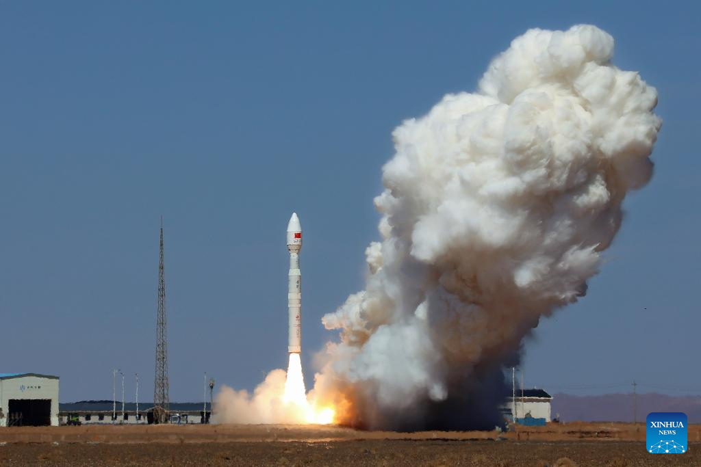 A Lijian-1 Y12 carrier rocket carrying eight satellites blasts off from the Dongfeng commercial space innovation pilot zone in northwest China, April 14, 2026. The rocket blasted off at 12:03 p.m. (Beijing Time) and successfully sent the satellites into their planned orbits. (Photo by Wang Haixia/Xinhua)