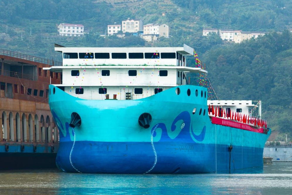 China's biggest all-electric bulk carrier, named Gezhouba, was launched on Thursday in Yichang, central China's Hubei Province, marking a key milestone in the country's green and intelligent shipping sector.