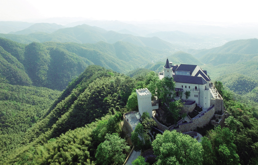 Naked Castle, a resort developed by the Naked Group, sits atop a hill in the Mogan Mountain area of Deqing, Zhejiang province. [Photo/China Daily]