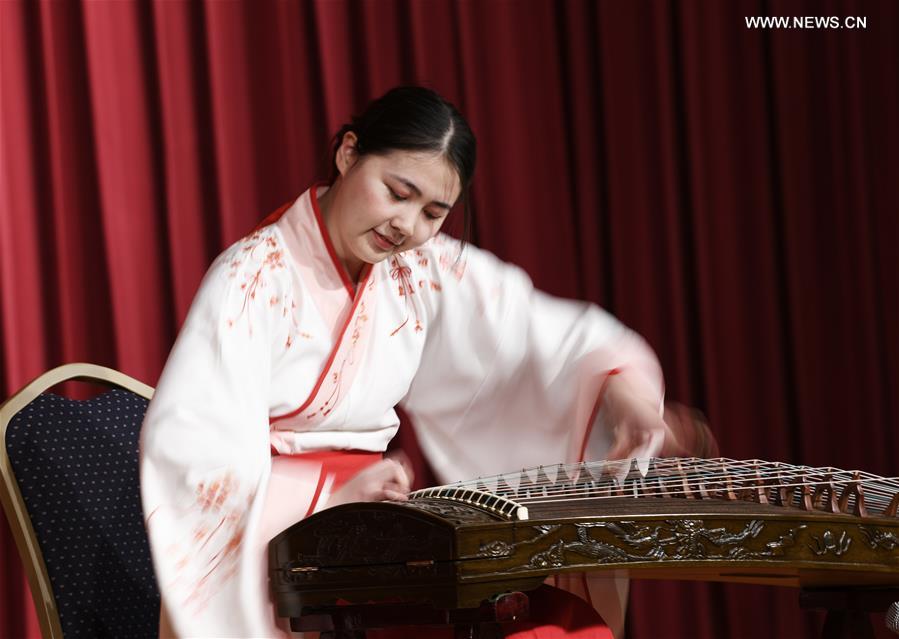 A performer plays Chinese Zither at a celebration marking the 40th anniversary of sister city relationships between Chinese and U.S. cities in Washington D.C., the United States, March 13, 2019. [Photo/Xinhua]