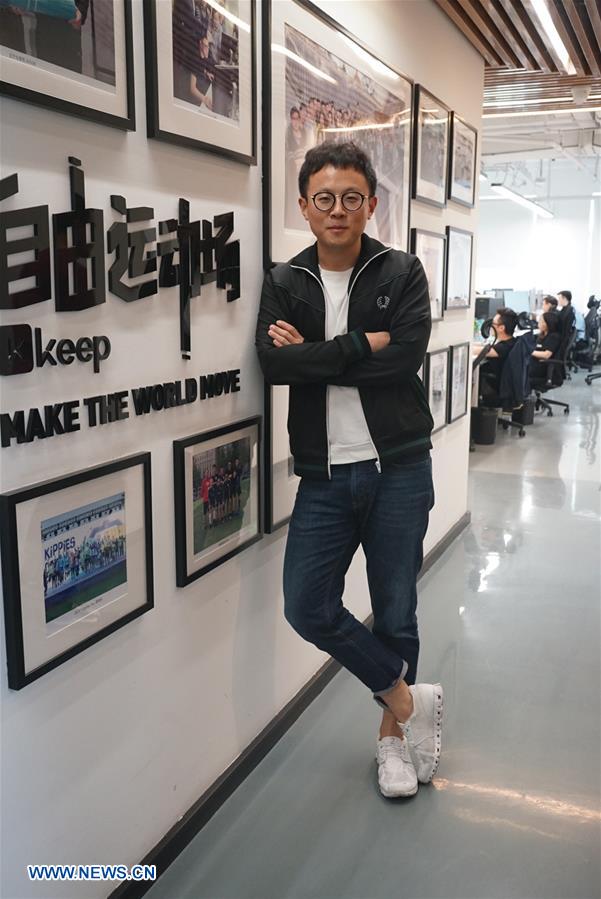 Wang Ning, founder of fitness app "Keep", is pictured at his workplace in Beijing, capital of China, April 19, 2019. [Photo/Xinhua]