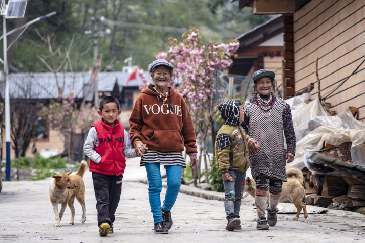 "Our life has changed fundamentally compared to the old days," Li said. In a recent photo taken by a photographer with Xinhua News Agency, Li, in a hoodie, walks with her grandson in the village with a big smile.