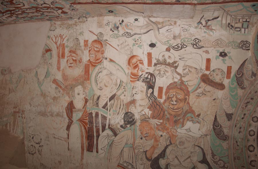 A mural in Cave 158 at the Mogao Grottoes from the Tubo period, located in Dunhuang, Gansu province, shows princes of different countries mourning for nirvana of the Buddha. [Photo provided to China Daily]