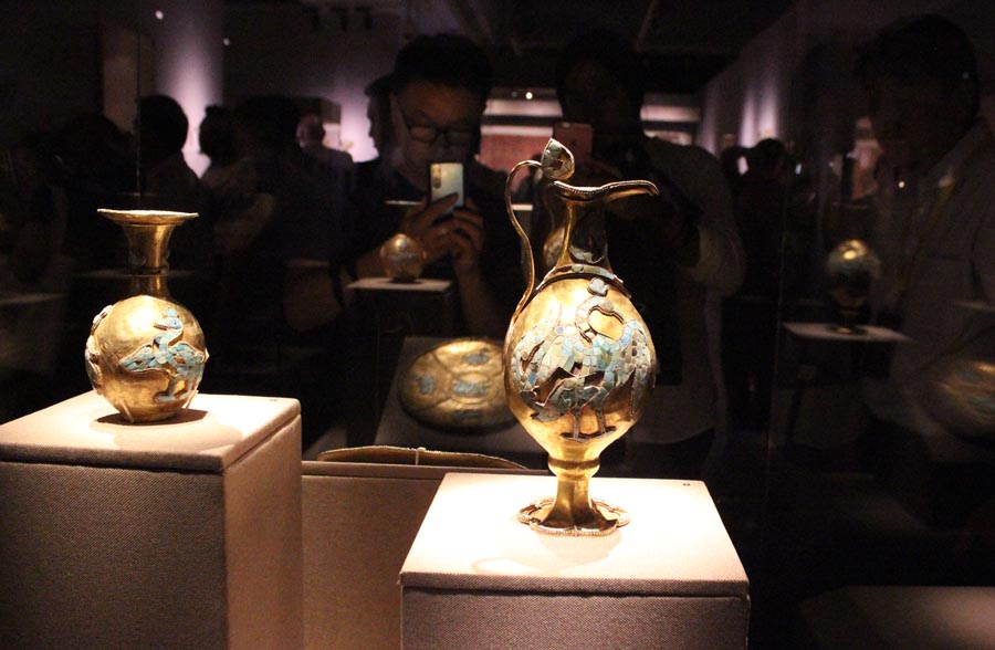 Six ewers from the period reflect the common influences shared across the different cultures along the Silk Road, and one of them, a 50-centimeter-tall gold ewer, represents a tasteful blend of their styles. It is believed to have been made by the Sogdian people for a customer looking for a piece that combined Tang, Sasanian and Central Asian influences.