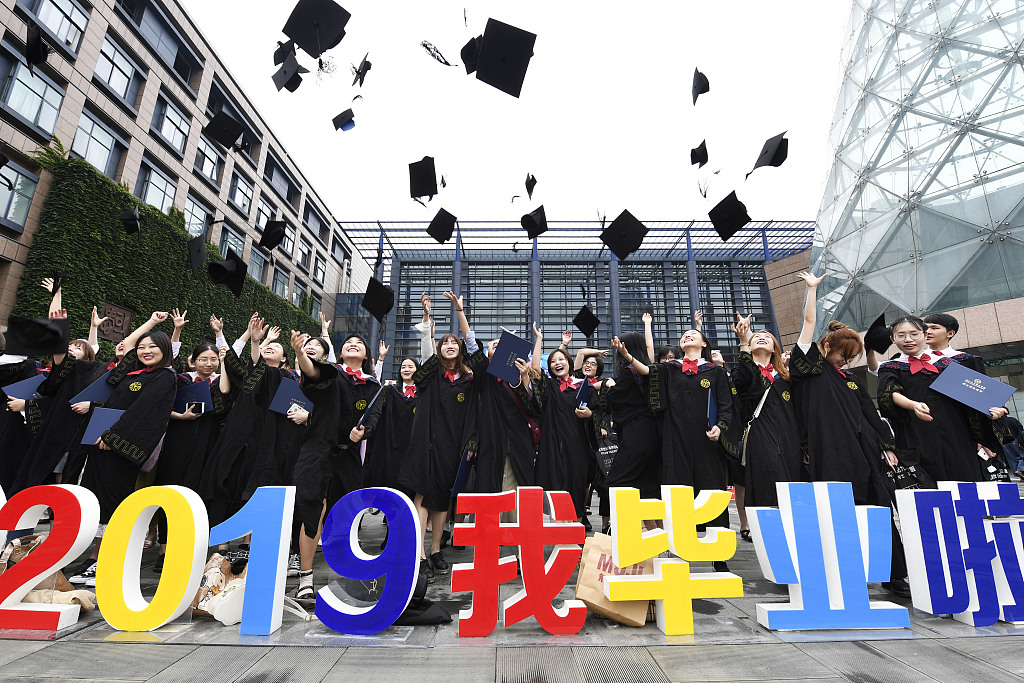 Students from Zhejiang University in Hangzhou, Zhejiang province, celebrate their graduation this year. [Photo/For China Daily]