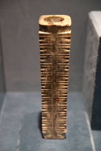 Original examples of Liangzhu jade like cong continued to be made in later historical periods. Cong articles were made and used for ceremonial occasions up until the Han Dynasty. People from the Song Dynasty (960-1279) also made porcelain replicas of cong as art pieces, according to Xu Lin, a researcher at the Palace Museum. Some of these Song replicas are also on display at the exhibition.