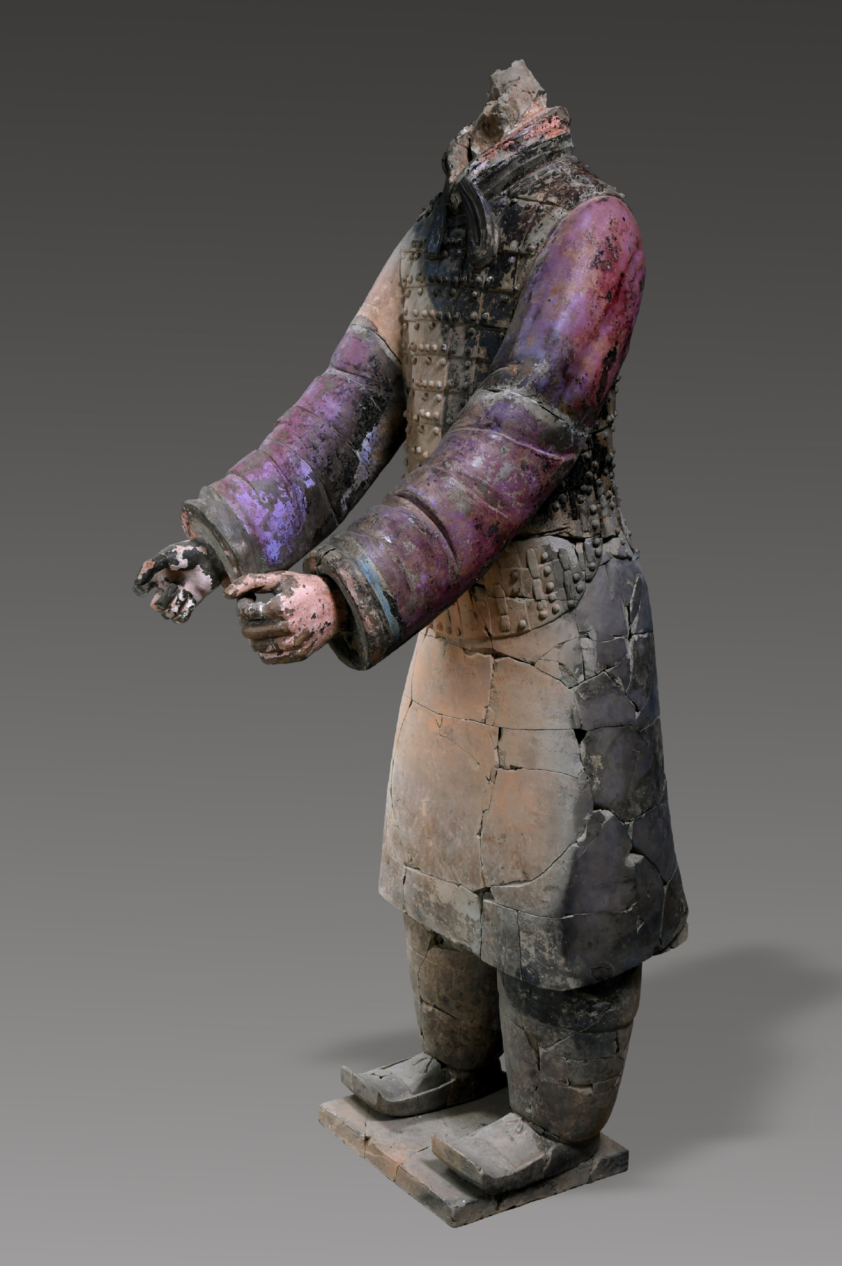 The hands of a headless warrior have been restored. [Photo/For China Daily]