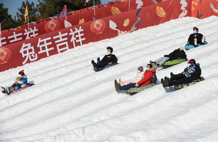 Parks including Summer Palace, Beihai Park and Yuanmingyuan Park, have launched ice and snow entertainment activities, which attracted more than 50,000 tourists during the holiday.