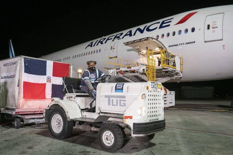 A staff member transports China's Sinovac COVID-19 vaccines at the international airport of Santo Domingo, the Dominican Republic, Feb 23, 2021. [Dominican Republic's Vicepresidency/Handout via Xinhua]