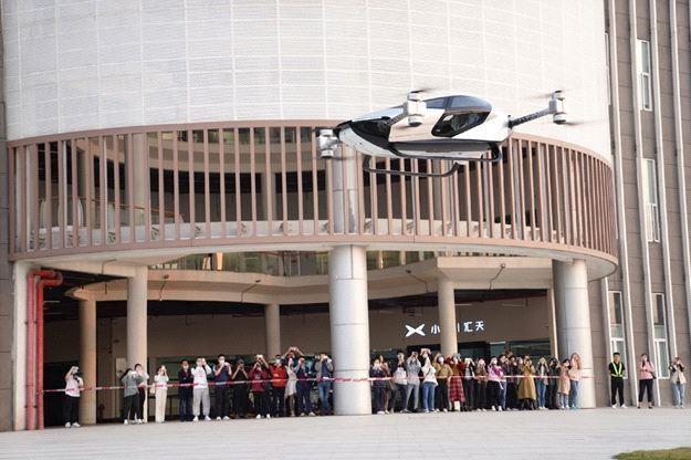 Visitors take a photo of urban flying electronic car produced by Xpeng Aeroht on Feb 18, 2023. [Proto provided to chinadaily.com.cn]