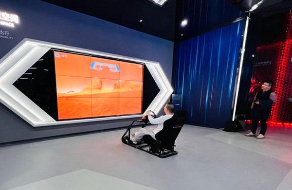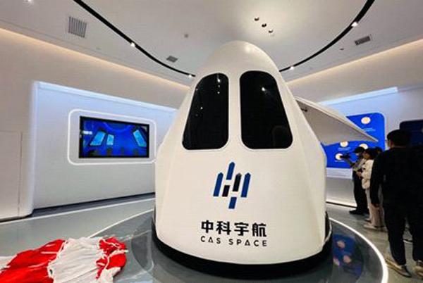 Visitors watch a model of manned rocket produced by CAS Space Industrial Base on Feb 19, 2023. [Photo by Song Jingyi/chinadaily.com.cn]