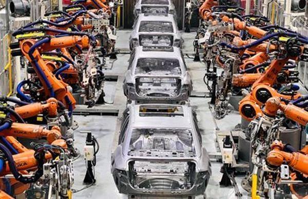 In a production workshop at GAC Aion, a NEV subsidiary of Guangzhou Automobile Group Co Ltd, lines of industrial robots equipped with precise seven-axis robotic arms install the car tires and execute the welding of the steel-aluminum structure car body while two uniformed technicians monitor parameters on a digital screen.