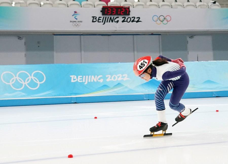 At the National Speed Skating Oval, known as the Ice Ribbon, which saw multiple records in speed skating at Beijing 2022, 11-year-old Zhang Qianyu recently won a youth speed skating championship and signed her name on a wall of honor in the facility, just as renowned Olympians had done last year.