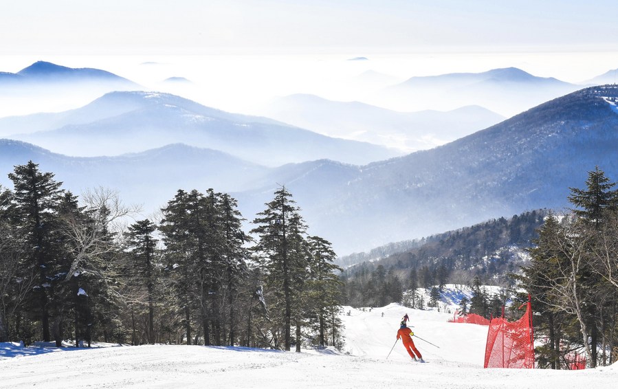 A skier enjoys skiing at Beidahu Ski Resort in Jilin City, northeast China's Jilin Province on Jan. 26, 2020. (Xinhua/Xu Chang)