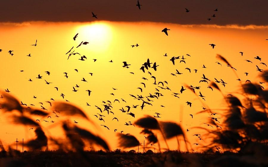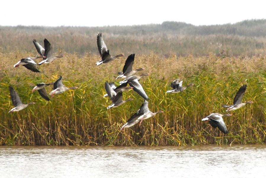 Early winter is a busy season for the Yellow River Delta National Nature Reserve, located in the estuary of the Yellow River in Dongying, east China's Shandong Province.