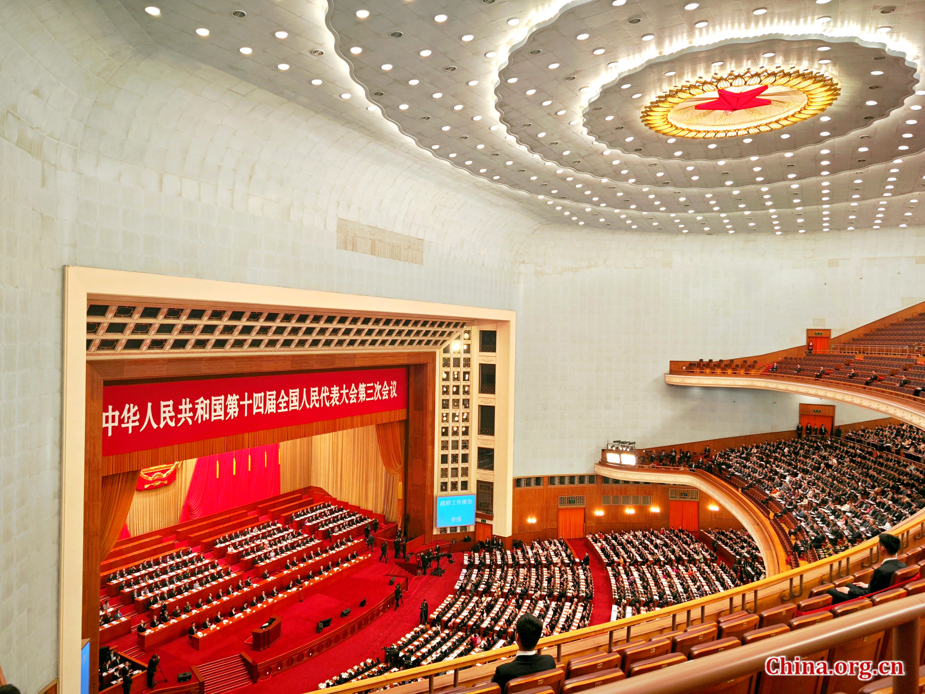 The first plenary meeting of the third session of the 14th National People's Congress (NPC) is held at the Great Hall of the People, Beijing, March 5, 2025. [Photo by Wang Yiming/China.org.cn]