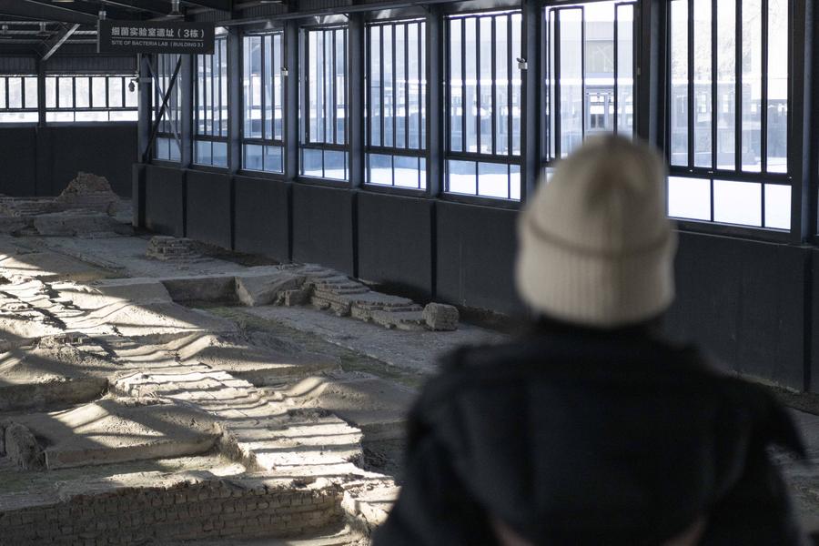 A woman visits the site used to be a bacterial laboratory at the former site of the Unit 731 in Harbin, northeast China's Heilongjiang Province, Dec. 13, 2024. (Xinhua/Xie Jianfei)