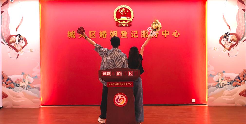 The new marriage registration office is in a traditional courtyard building and boasts a one-stop service, allowing couples to choose wedding dresses and suits, take wedding photos or purchase dazzling marriage souvenirs.