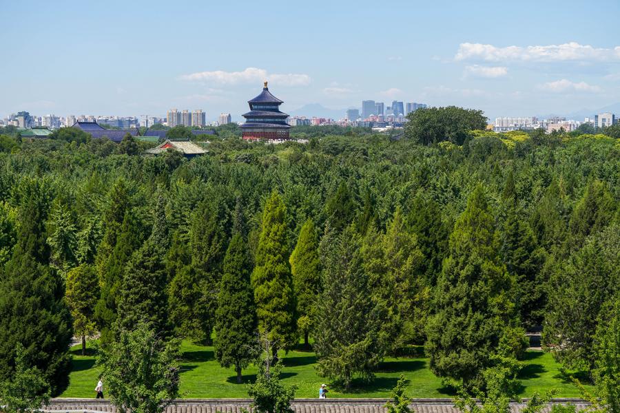 Tourists visit the Tiantan (Temple of Heaven) Park in Beijing, capital of China, June 25, 2024. (Xinhua/Ju Huanzong)