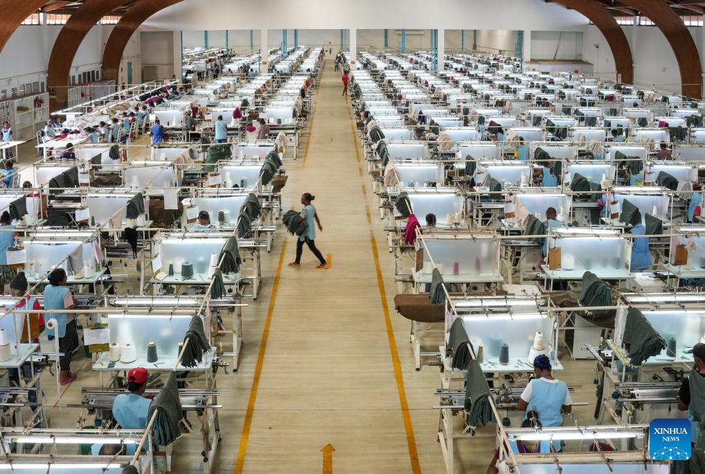 People work in a workshop of China's Inner Mongolia King Deer Cashmere Group on the southern outskirts of Madagascar's capital, Antananarivo, March 28, 2025. (Xinhua/Li Yahui)
