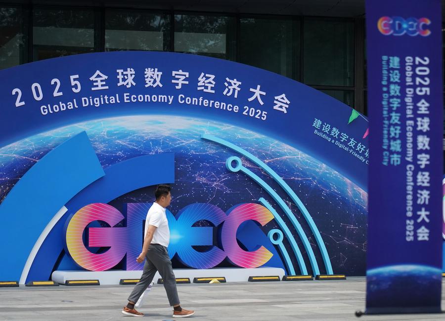 This photo taken on July 2, 2025 shows a sign of the Global Digital Economy Conference 2025 in Beijing, capital of China. (Xinhua/Zhang Chenlin)