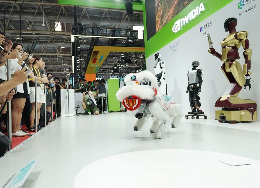 A robot lion performs at the Digital Technology Chain area of the third China International Supply Chain Expo (CISCE) in Beijing, capital of China, July 16, 2025. (Xinhua/Zhang Chenlin)