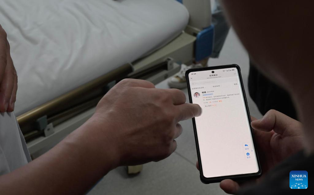 A doctor at the Ili Hospital of Traditional Chinese Medicine demonstrates the hospital's new telemedicine system in Ili Kazak Autonomous Prefecture, northwest China's Xinjiang Uygur Autonomous Region, Aug. 17, 2025. (Photo by Zhang Lifeng/Xinhua)