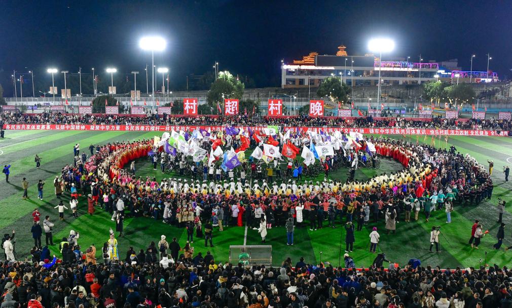 This photo taken on Jan. 2, 2026 shows the opening ceremony of 2026 China's Village Super League (VSL), dubbed "CunChao" in Rongjiang, southwest China's Guizhou Province. (Xinhua/Yang Wenbin)