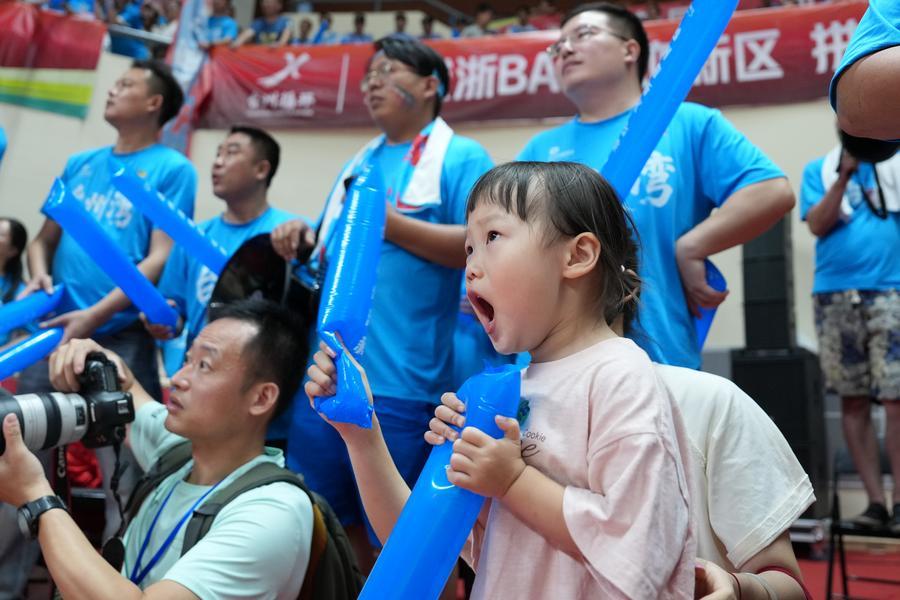 Basketball fans of team Taizhou react during the ZheBA game between team Taizhou and team Jiaxing in Taizhou, east China's Zhejiang Province, Sept. 10, 2025. (Xinhua/Huang Zongzhi)
