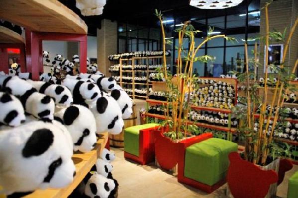 A store sells panda-themed souvenirs at Indonesia Panda Castle, on Nov 26, 2017. [Photo:/China Plus]