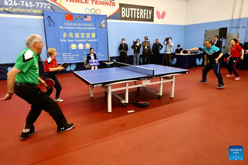 A table tennis friendship match was held here on Sunday to celebrate the 50th anniversary of "Ping-Pong diplomacy" between China and the United States.