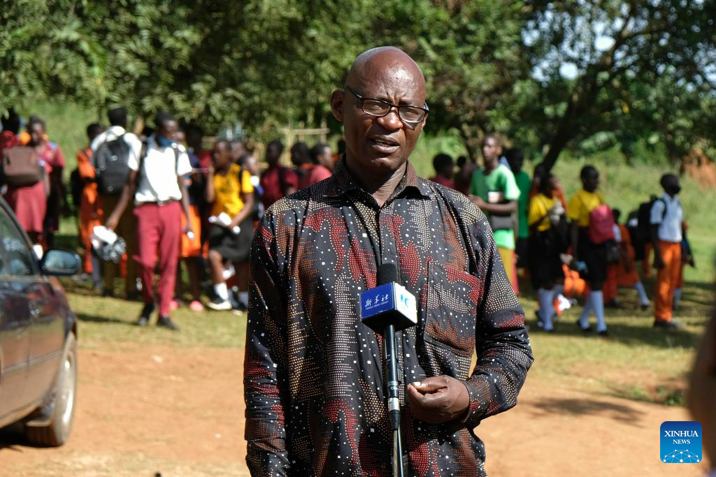 Ephraim Muwonge, deputy headmaster of Entebbe Comprehensive Secondary School, speaks in an interview with Xinhua in Wakiso, Uganda, April 5, 2022.(Photo by Hajarah Nalwadda/Xinhua)