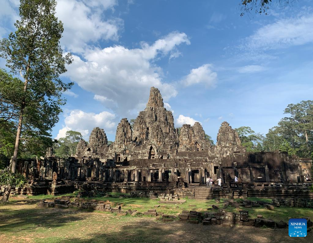 Photo taken on April 5, 2022 shows the Bayon Temple in the Angkor Archeological Park in Siem Reap province, Cambodia. China has been one of the key contributors to safeguarding, preserving and developing the famed Angkor Archaeological Park in northwest Cambodia's Siem Reap province, officials said on Wednesday.(Photo by Van Pov/Xinhua)