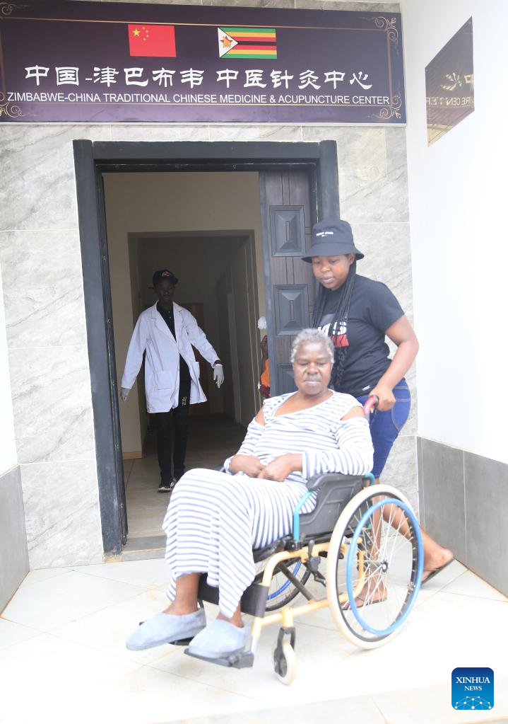 People are seen at a Traditional Chinese Medicine center at Parirenyatwa Hospital in Harare, Zimbabwe, on Nov. 28, 2022. Traditional Chinese Medicine (TCM) is providing a viable medical alternative to Zimbabweans as more people turn to natural remedies. (Photo by Shaun Jusa/Xinhua)