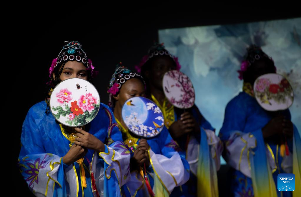 Kenyan students perform traditional Chinese opera during a Chinese cultural event held at the Kenya National Theater in Nairobi, Kenya, Nov. 28, 2022. Launched by the Chinese Embassy in Kenya, Kenya Cultural Center and Confucius Institute at the University of Nairobi, an event themed with Chinese opera was held at the Kenya National Theater on Monday in Nairobi. A series of activities enables attendees to have a better knowledge of Chinese opera and experience the charm of traditional Chinese culture. (Xinhua/Li Yahui)