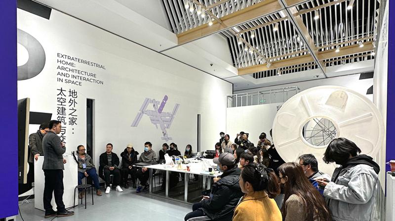 In the "Extraterrestrial Home: Space Architecture and Interaction" exhibition, teachers and students imagine what space capsules may one day look like for interstellar travel, including a meditation room, ice rink, garden, and sleeping cabin.