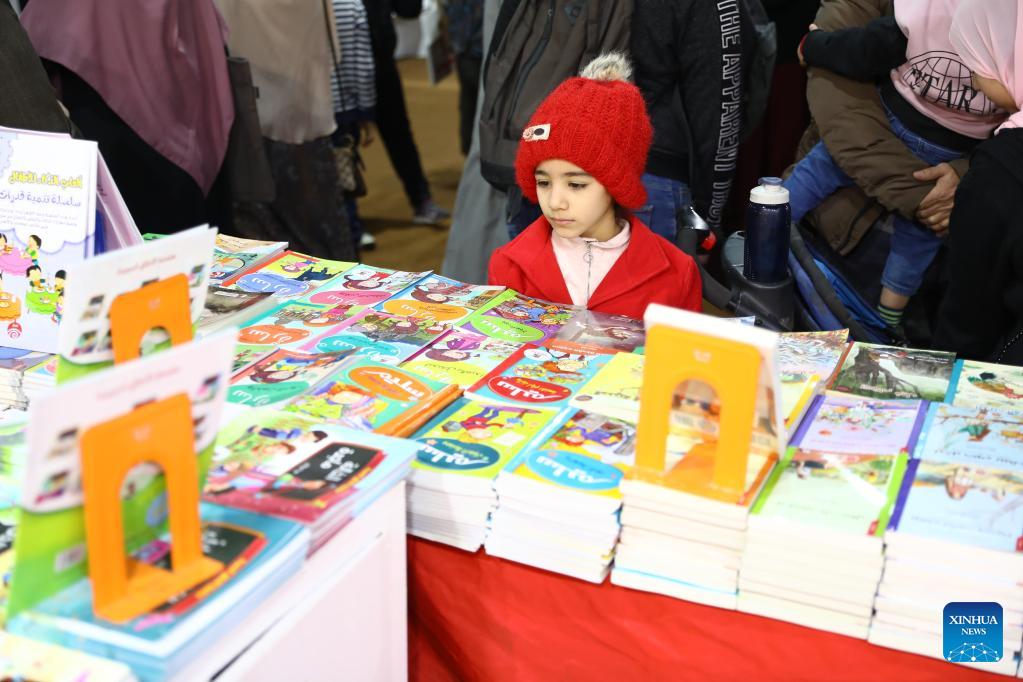 A young girl browses children books at a booth during the Cairo International Book Fair (CIBF) in Cairo, Egypt, on Feb. 5, 2023. Held at Egypt International Exhibition Center in New Cairo, the 54th CIBF kicked off on Jan. 25 and continues till Feb. 6, exhibiting books of at least 1,047 publishing houses from over 50 countries. The fair, which is organized by the GEBO of the Ministry of Culture, attracted nearly 3 million visitors. (Xinhua/Ahmed Gomaa)