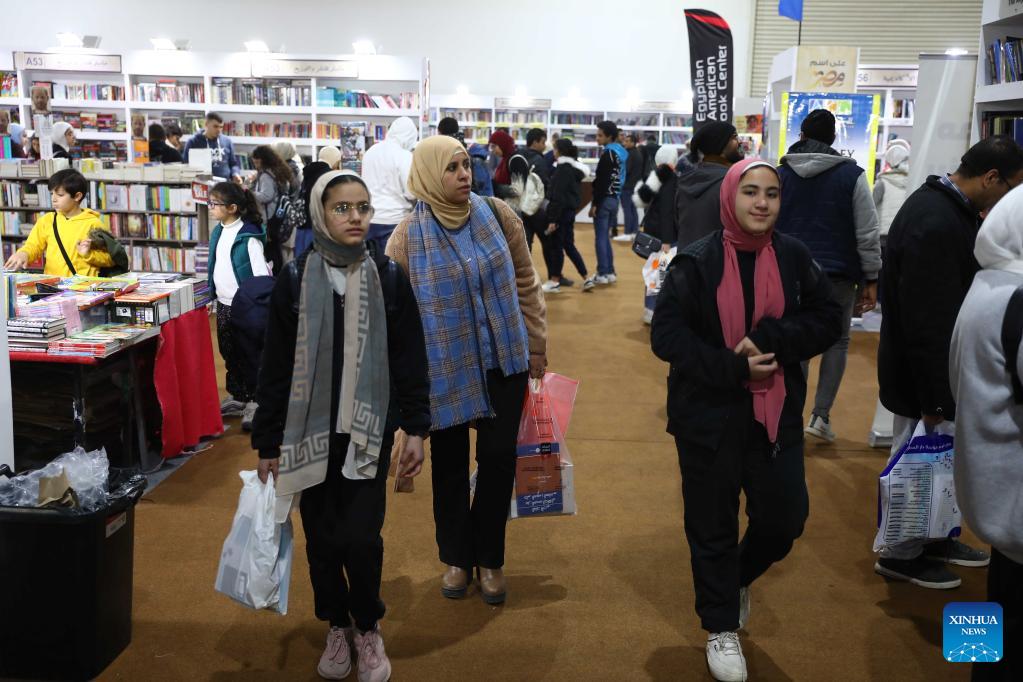 People visit the Cairo International Book Fair (CIBF) in Cairo, Egypt, on Feb. 5, 2023. Held at Egypt International Exhibition Center in New Cairo, the 54th CIBF kicked off on Jan. 25 and continues till Feb. 6, exhibiting books of at least 1,047 publishing houses from over 50 countries. The fair, which is organized by the GEBO of the Ministry of Culture, attracted nearly 3 million visitors. (Xinhua/Ahmed Gomaa)