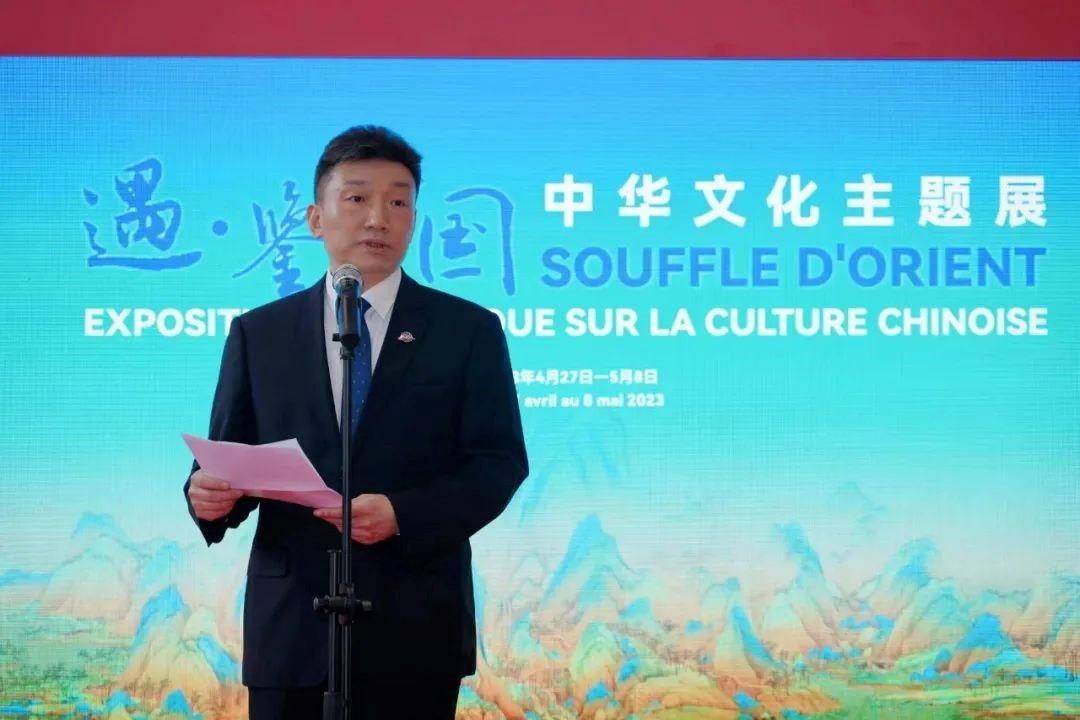 Yu Tao, vice president of China International Communications Group (CICG), speaks at the opening ceremony of a Chinese cultural exhibition at the Foire de Paris on April 27, 2023. [Photo/CICG]