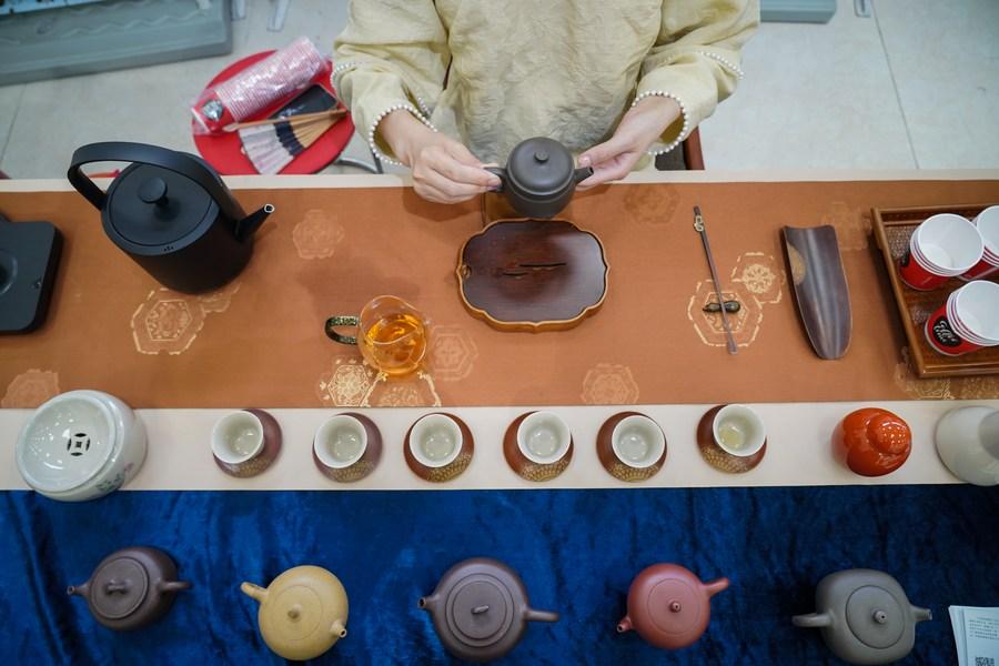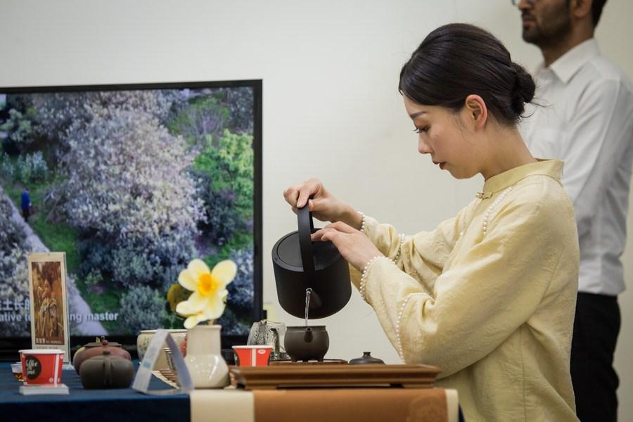 The event entitled "Tea for Harmony: Yaji Cultural Salon" included a photo exhibition on tea history and culture in China, a display of clay teapots, demonstrations of tea ceremony and refreshments making as well as a tea-themed lecture.