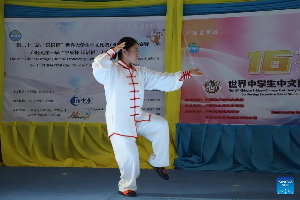 A contestant competes in the "Chinese Bridge" Chinese Proficiency Competition in Kigali, Rwanda, June 11, 2023. Xinhua/Ji Li