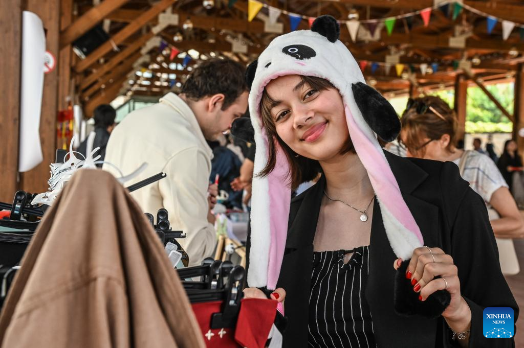 A student wearing a panda-shaped hat poses for a photo during a celebration marking the upcoming traditional Chinese Dragon Boat Festival in Istanbul, Türkiye, June 15, 2023.(Photo by Omer Kuscu/Xinhua)
