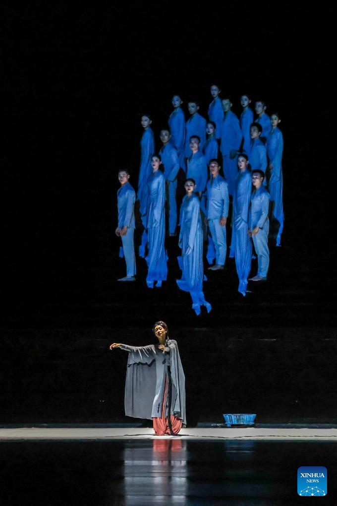Artists perform the dance "Dongpo: Life in Poems" at Lincoln Center in New York, the United States, March 15, 2024. (Photo by Winston Zhou/Xinhua)