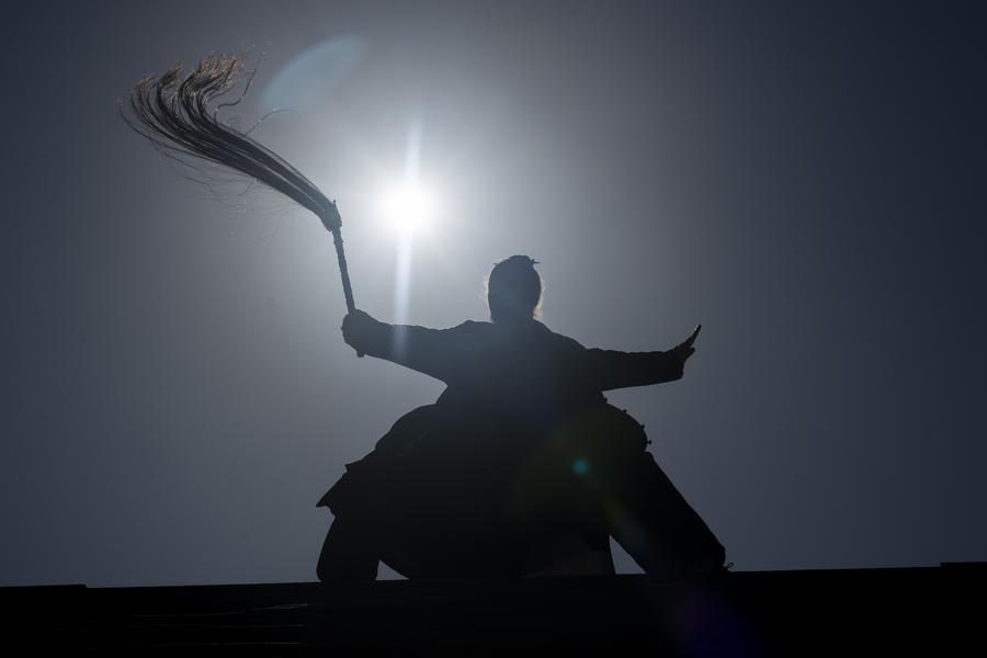 Jake Pinnick practices martial arts at Jade Void Temple in Shiyan City in central China's Hubei Province, Nov. 29, 2024. (Xinhua/Wang Yuguo)