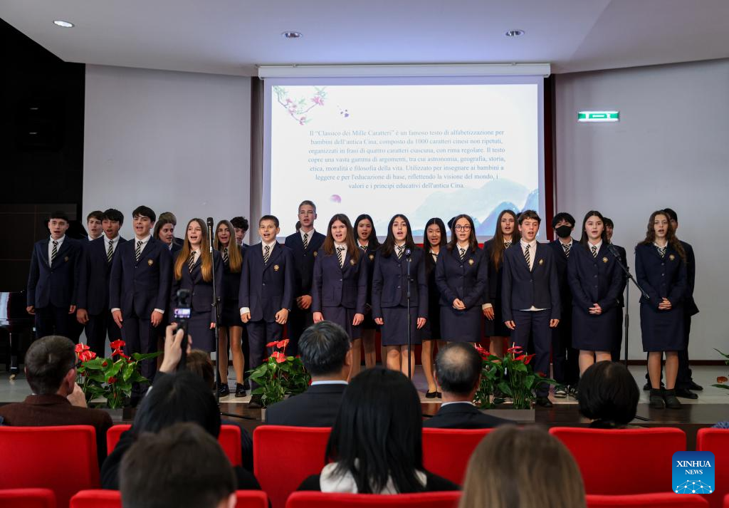 Dozens of Italian students at a boarding school in Rome on Tuesday showcased their passion for the Chinese language and culture through a variety of performances.(Xinhua/Li Jing)