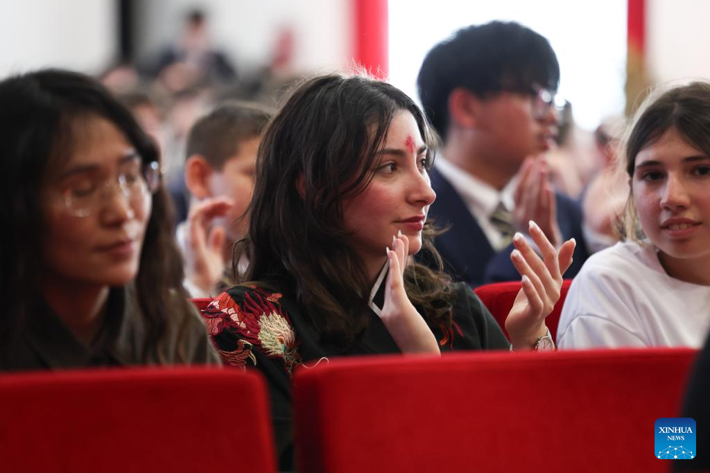 Students attend a Chinese cultural event titled "Celebrating the Spring" in Rome, Italy, April 8, 2025.