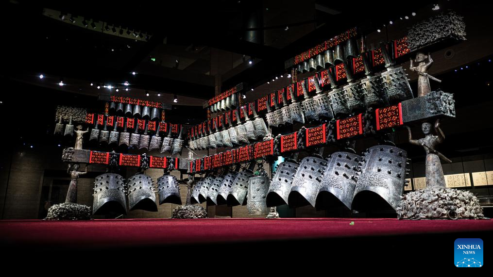 The Bianzhong of Marquis Yi of Zeng is pictured in Hubei Provincial Museum in Wuhan, central China's Hubei Province, April 17, 2025. Three documentary heritage collections submitted by China have been inscribed in the UNESCO Memory of the World Register, the United Nations Educational, Scientific and Cultural Organization announced on Thursday.