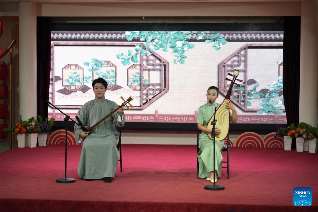 Artists of a Pingtan troupe from east China's Jiangsu Province perform at the China Cultural Center in Abuja, Nigeria, May 11, 2025.