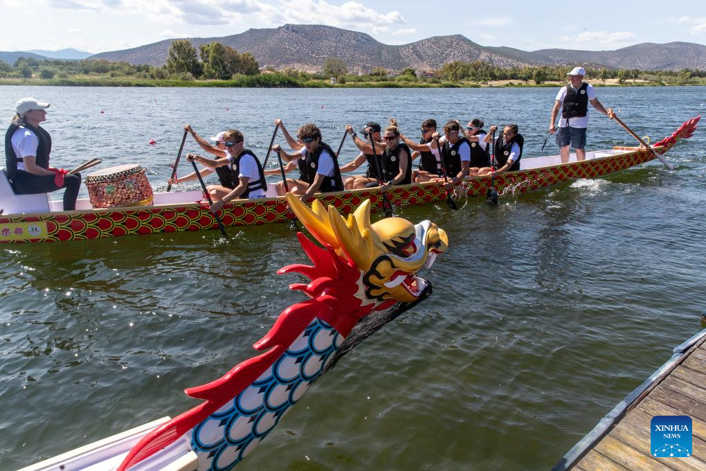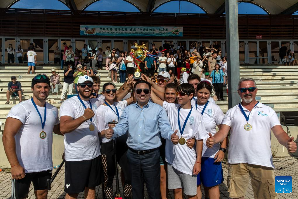 Hundreds of spectators gathered at the Olympic Rowing Center in Schinias, northeast of Athens, on Sunday to witness a vibrant dragon boat race held in celebration of the Dragon Boat Festival and the deepening ties between China and Greece.