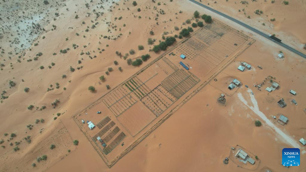An aerial drone photo taken on May 22, 2025 shows the China-Africa Green Technology Park in Bir El Barka, Trarza region, western Mauritania. The China-Africa Green Technology Park is a key demonstration project supporting Africa's Great Green Wall Initiative, launched in 2007 to create a 7,000-km ecological barrier across northern Africa and the Sahel to combat desertification. (Xinhua/Si Yuan)